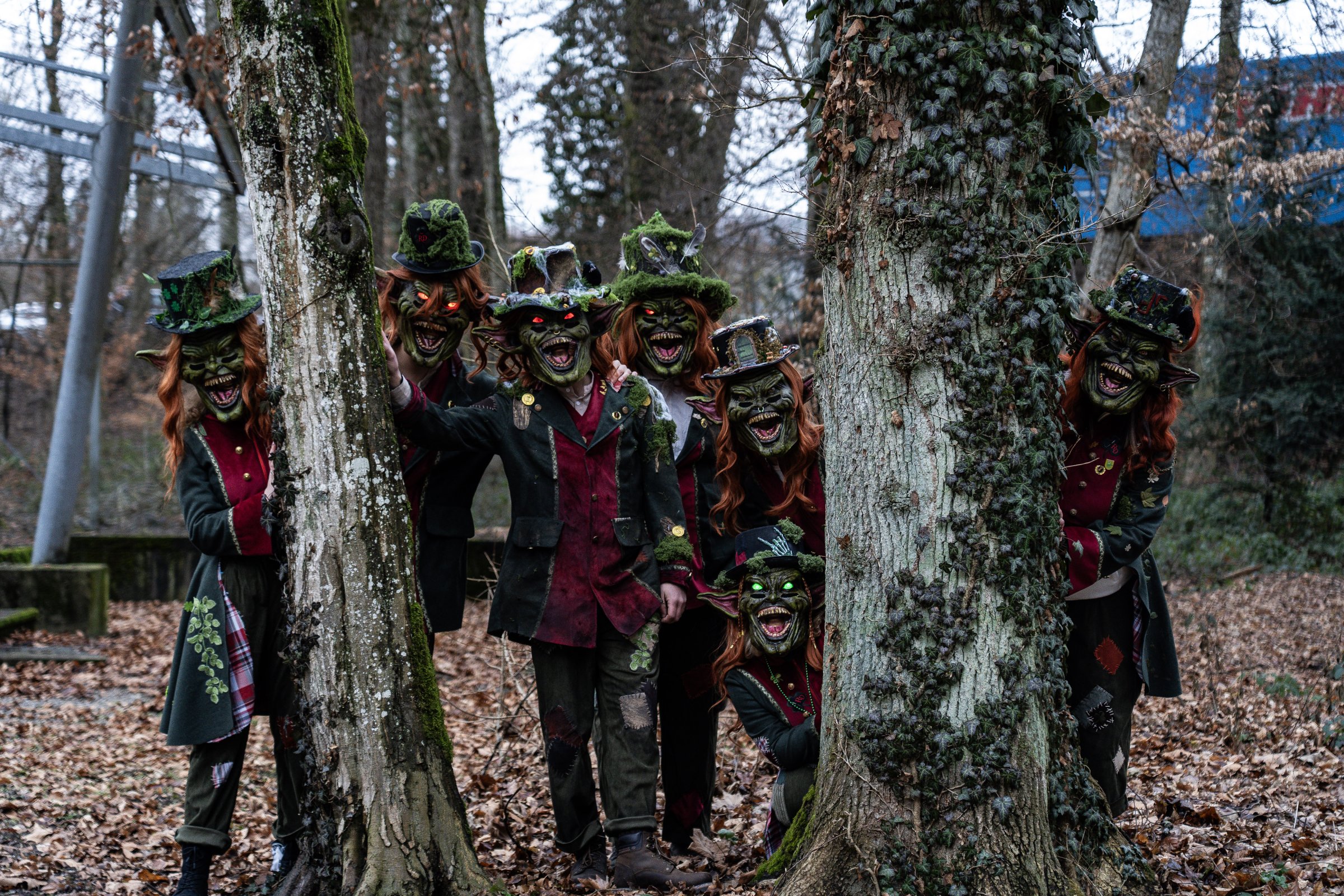 Um den Wald zu schützen, waren wir ab November 2016 Wald-Elfen-Krieger. Die Kostümvorstellung war das Highlight unseres großen Jubiläums-Guggentreffen in Lauchringen. Zur angemessenen Präsentation wurde die gesamte Bühne als Wald dekoriert und in der Hallenmitte ein riesiger Lichterbaum aufgestellt.